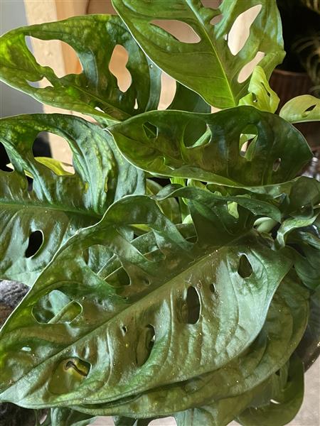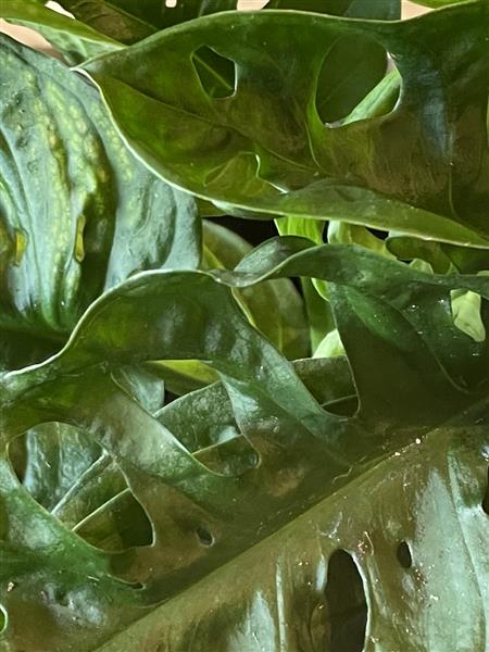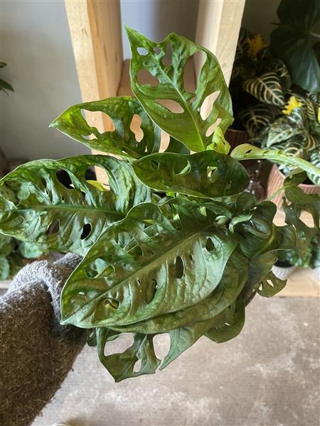 This stunning member of the Monstera family has rich green, paper-like leaves. Native to Central and South America. Toxic if ingested - keep away from pets and children. Toxic if ingested - keep away from pets and children.